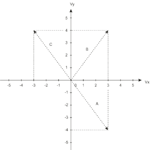 Un bote posee cuatro turbinas que, debido al uso, están desalineadas. Por ello, cada una de las dos primeras turbinas le proporciona al bote una velocidad representada por el vector A, la tercera turbina proporciona la velocidad que representa el vector C y la cuarta turbina la velocidad del vector -B, todo en $\frac{m}{s}$ms . Si un pescador necesita obtener la velocidad total del bote para poder conocer hacia dónde debe marcar el rumbo para realizar la pesca del día, determine el vector.